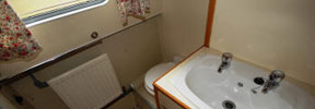 The master bedroom is arranged as you wish either with a fixed double bed or two fixed singles, with sprung mattress, drawers and storage under, a wardrobe, airing cupboard and wet locker. You can walk round in either case.